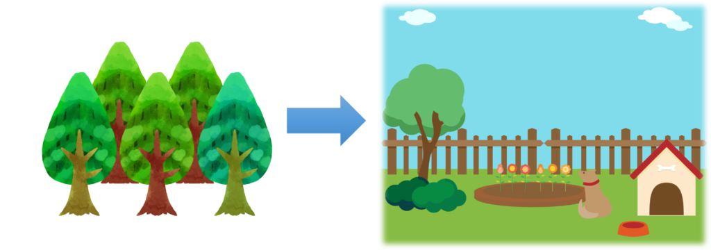 樹木が覆い茂って暗い庭を、解体の技術で明るくてきれいな庭にできます。