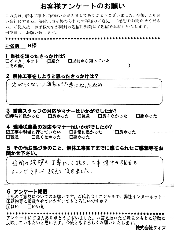 お困りごとやご相談等ありましたら是非、ワイズ解体へ!