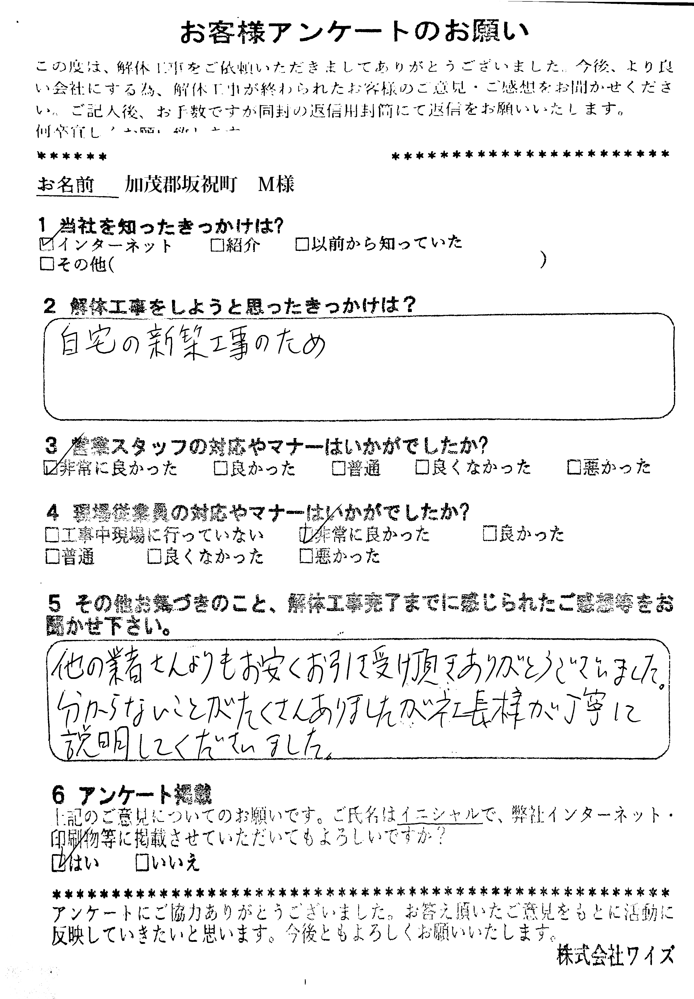 加茂郡坂祝町M様のお客様の声(解体・土地整備)