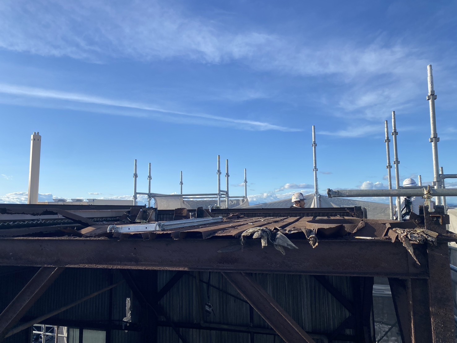 ビルの上で作業をしているので、空をすぐそばに感じます。