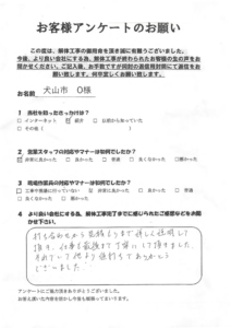 弊社代表からのメッセージ 耐震性の問題もあり、建て替えられるとのことでご依頼いただきました。地震にも耐えられるご新居の完成で安心して暮らせますね。解体させていただき、ありがとうございました。